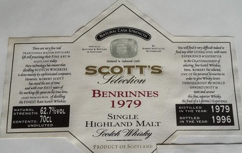 Benrinnes (Scott's), 1979 - 1996, 17 years, 62.7 vol, Speyside