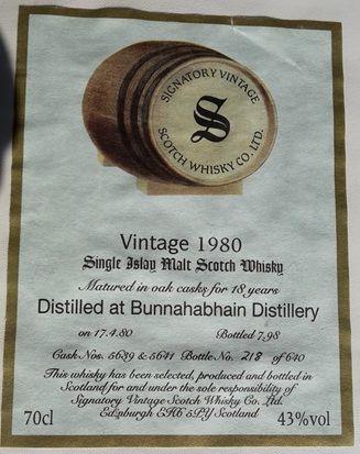 Bunnahabhain (Signatory) single cask, 20 years, 56 vol, Islay